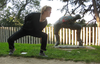 old commie statue. the city encourages skating here, graffiti, and destruction of this thing, to remind the russians that they aren't scared.